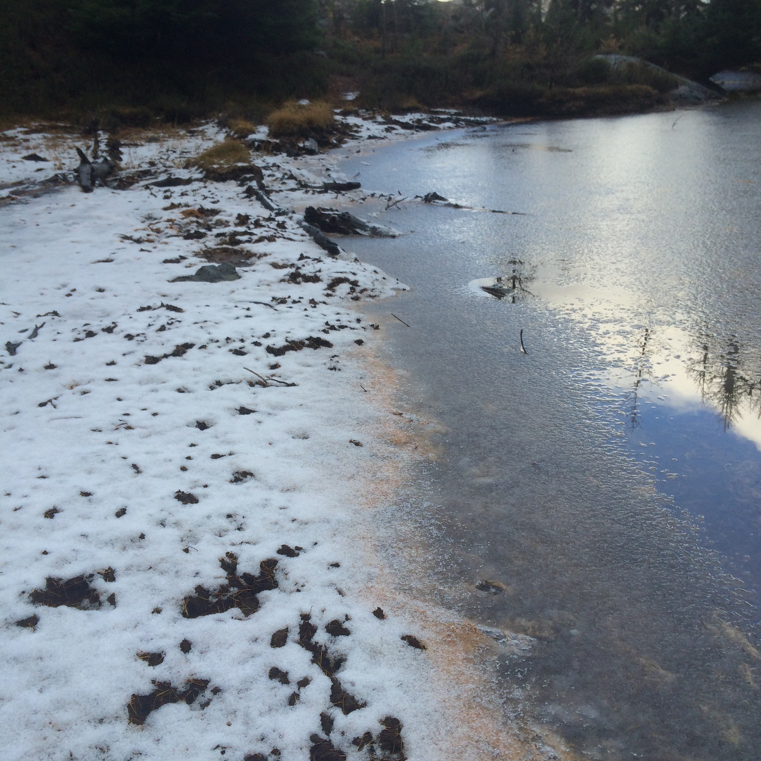 There was also a glorious frozen pond over in this area. The ice was pretty thick, at least enough to take the impact of a pretty good size rock. Very aesthetic.